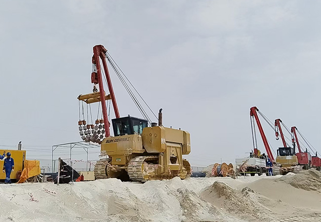 阿聯酋地區(qū)氣候炎熱,夏季氣溫常高達50攝氏度以上,加之沙塵環(huán)境復雜,對工程設備的性能提出了高要求。中蘇海工履帶吊管機以其強大的動力系統、高效的散熱設計以及堅固的結構,完美適應了這些挑戰(zhàn),確保了施工的高效性和連續(xù)性。設備在高溫環(huán)境下運行穩(wěn)定,操作靈活,極大地提升了施工效率,贏得了現場施工人員的一致好評。